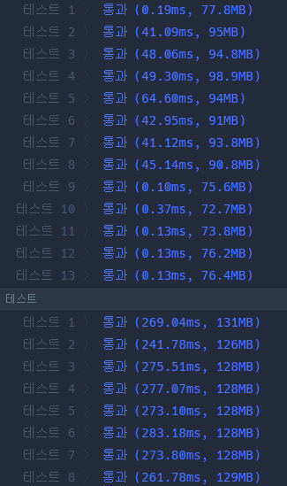 이전에 풀었던 문제는 스택보다 데크 사용이 월등히 좋은 결과를 냈습니다. 이번에도 기대했지만 일부 테스트 케이스에서는 오히려 시간과 메모리 측면에서 데크가 뒤떨어지는 결과를 보였습니다.